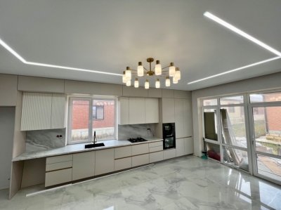 В доме 4 комнаты , терраса 14м. с витражным остеклением, кухня-гостиная 48 м., участок в собственности 4.5 сотки.